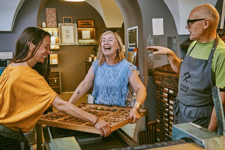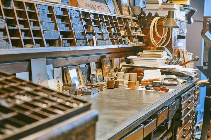 Join the printing workshop and become a printmaker for a day. The master printmaker will tell you about the old-fashioned equipment, explain all the skills needed to make a book, and guide you through the process of printing a poster or the front cover of a pocket notebook. He will teach you how to prepare printing ink and help you understand how a simple printing press works. Select some wooden letters and, for a little while, become a paper-feeding assistant, printmaker or even a quality supervisor.