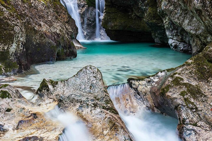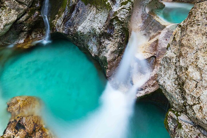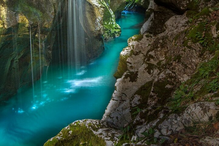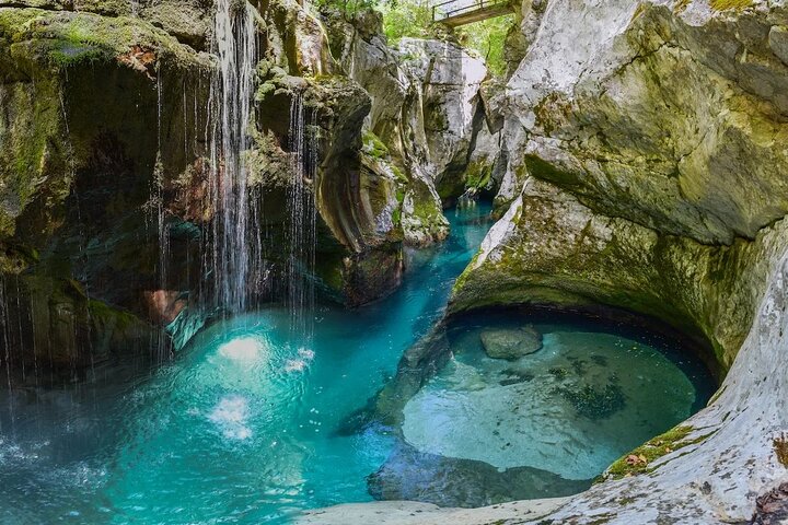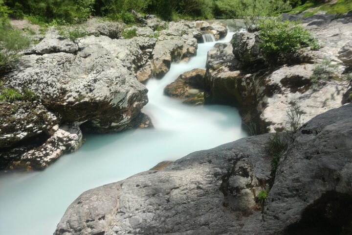 The Velika Korita Soce, or the Soca Grand Canyon, is one of the most beautiful attractions of River Soca (Slovenia). The river has a total of 4 major limestone canyons, the largest of which is the Velika Korita. The canyon is located in the Triglav National Park, only 10 minutes from Bovec.The now-iconic location is one of the most beautiful sights in Soca Valley. It is located 6 km from Bovec in the Lepena Valley.
