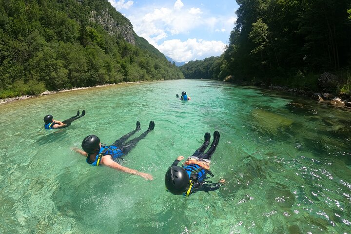 You will paddel 8km down one of the cleanest rivers in the world. Our guide will lead the raft and inbetween the tour make some stops, where you will experience swimming in the river with its 10°C. You will also creat Raft-slide to have additional fun with jumping and sliding, maybe even making a front flip. If you are brave enough you can jump from a 7m rock, named “The Manhatten Rock”.