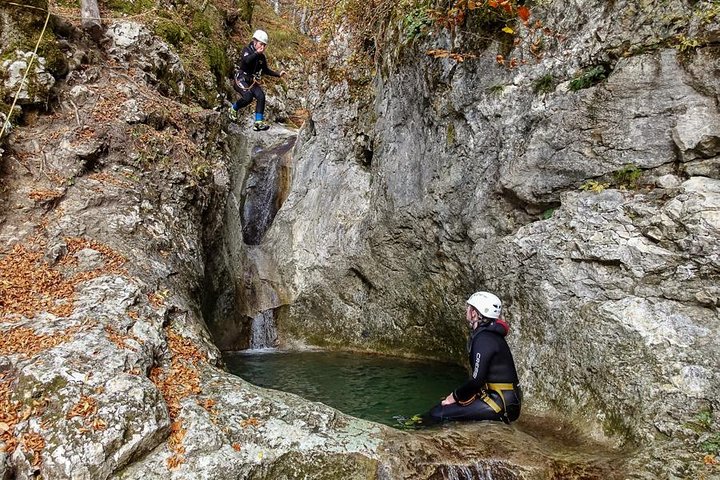 Spend an energy-filled Canyoning Bled Slovenia with us. Descend into the canyon of a wild Alpine river which can be explored only through canyoning. Feel the exhilarating feeling in the middle of wild nature with hiking, swimming, abseiling and jumping into the natural pools.