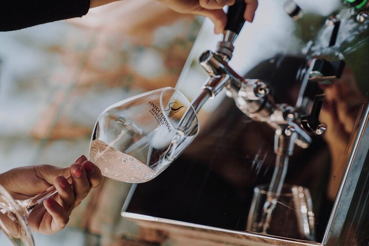 After exploring Piran’s narrow alleys, historic harbor, and panoramic coastal viewpoints, we’ll transport you to the rolling hills of Slovenian Istria – one of Europe’s most underrated wine regions. Here, at the famous Wine Fountain in Marezige, you’ll embark on a premium wine tasting journey featuring three carefully selected local wines, each telling the story of this fertile Mediterranean landscape.