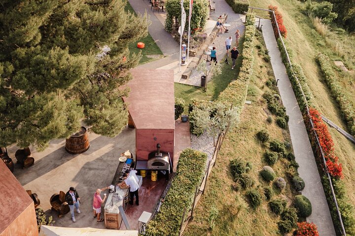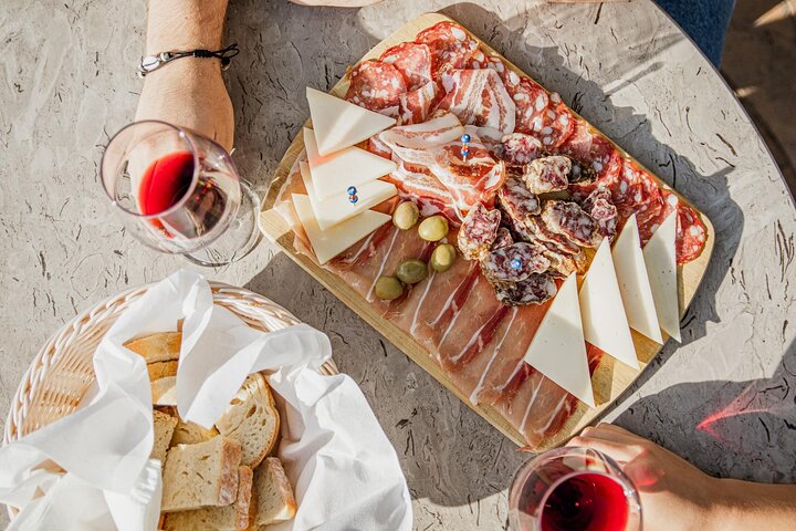 From the coast, we head inland to the rolling green hills of Slovenian Istria, arriving at Marezige, home to the famous Wine Fountain. Here, you'll have the chance to taste three carefully selected local wines (included in the price), each one reflecting the character of the region. The experience is set against a stunning backdrop of vineyards and the Gulf of Koper, making it an unforgettable setting for wine lovers. Alongside the wines, you'll enjoy a plate of local Istrian snacks, offering a taste of traditional flavors that pair beautifully with the wines.