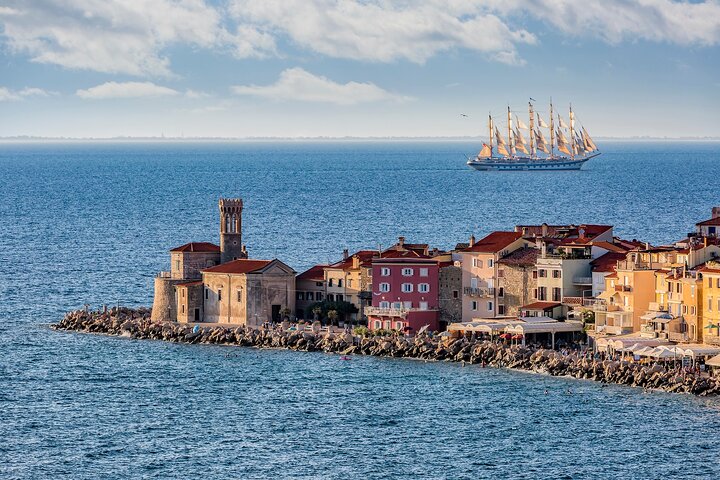 Embark on a scenic drive along the picturesque Slovenian hilly coast. Witness the town of Izola and its captivating coastline from a distance. Your guide will narrate the region’s rich history, immersing you in its past.