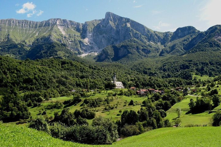 The journey starts in Kranjska Gora, a renowned ski resort. Nearby, we’ll visit the stunning Peričnik Waterfall, allowing a walk beneath it to admire natural grandeur. Our route then leads to Lake Jasna with breathtaking views of the Alps. Continuing through Slovenia’s highest passes – Vršič pass, surrounded by mountains, we’ll reach Velika Korita Soče, a natural gem shaped by the Soča River. Driving through Trnovo, we reach Kobarid, a historic site of intense WWI battles. The trip includes Napoleon’s Bridge, Kozjak Waterfall, and a scenic path along the Soča River, revealing the valley’s hidden gems.