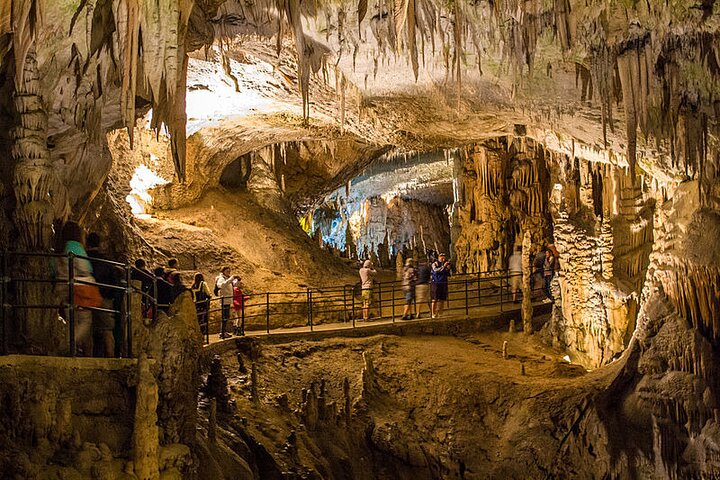 The temperature in the cave is around 10°C/50ºF. Walking comfortable shoes and warm jackets are recommended,