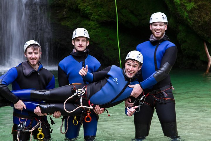 Slovenia is famous for its pristine and untouched nature and the best canyoning around. Canyons surrounding Bled are the most beautiful ones in the country. Join us and explore the gorges and crystal clear fresh mountain streams that have carved them centuries ago. We offer you a chance to get away from the crowds of the town. Experience the best canyoning Bled has to offer – just a step away!We'll walk, swim in clear fresh stream, slide down the natural slides, jump in water and rope descent down the cliff