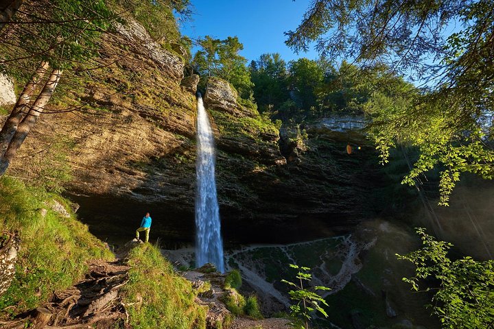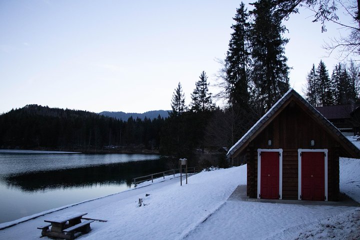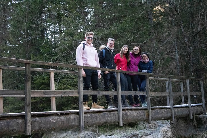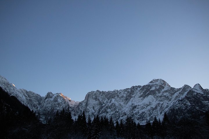 Departure at 8 AM from Ljubljana and at 8:45 AM from Bled. Our day starts with an easy hike to Peričnik waterfall. Peričnik is Slovenian hidden gem and it is even nicer in the winter season when everything around is frozen. We continue our way to Kranjska Gora where we make a stop at crystal clear Jasna lake where you can spot fabulous Goldhorn. Next stop is at nature reserve Zelenci, which is a spring of Slovenian longest river Sava and offers breathtaking landscape. Our trip continues with observing of Planica Nordic centre. Planica is home to Slovenian ski jumping tradition with biggest ski jumping slope. From here we hike to valley of Tamar. Throughout the hike, you can enjoy beautiful views of Slovenian Alps and in the end, you can enjoy traditional Slovenian lunch at a mountain hut in the valley. We continue to our neighbouring country Italy where we make last stop at Laghi di Fusine which offer stunning scenery. After that, we return to your departure point.